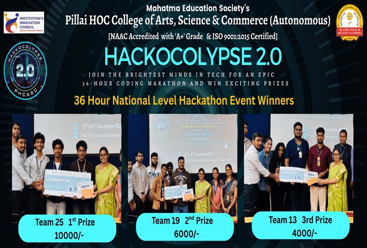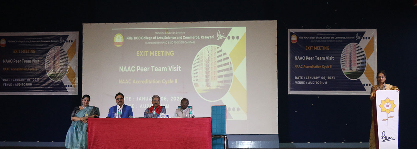 Pillai HOC College of Arts, Science and Commerce, Rasayani was established in the year 2008 by Dr. K. M. Vasudevan Pillai, Chairman and CEO, MES whose vision was to provide students of Rasayani with quality education in a high-tech atmosphere.
