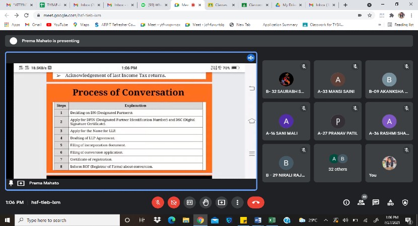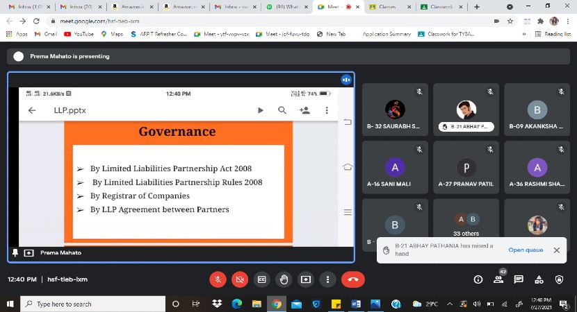 Apart from clearing the queries she also gave them some important insights on the topic ‘Limited Liability partnership’ where she explained the relevance of the topic in her internship period.