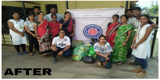With the aim of creating Plastic Free Environment, NSS Unit has fixed following objectives under the “Plastic Free Cleanliness Drive”. To create awareness among the people on the hazards of single use of plastic and to motivate them towards the use paper or fabric (Cotton or Jute) bags. To create a plastic free environment at the adopted Village Karade. The Plastic Free Cleanliness Drive was started with the “Awareness Campaign and Door to door Collection of Plastic Waste” at the adopted village Karade.