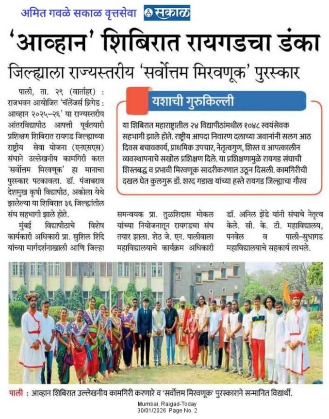 The NSS volunteer Vishal Yadav of Pillai HOC College of Arts, Science and Commerce (Autonomous), Rasayani, participated in the prestigious AVHAN Chancellor’s Brigade: NSS Training Camp on Disaster Management held at Dr. Panjabrao Deshmukh Krishi Vidyapeeth, Akola. This state-level camp serves as a rigorous training platform to develop a dedicated cadre of first responders within the student community. This significant achievement was attained under the leadership and expert guidance of NSS Program Officer Dr. Anil Zende, whose constant mentorship continues to drive the NSS Unit’s success.