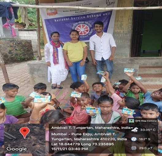 Under the scheme To pay tribute to our former Prime Minister, Pandit Jawahar Lal Nehru NSS unit in association with Internal Quality Assurance cell (IQAC) of Pillai HOC college of Arts, Science and Commerce, Rasayani had organized an activity on “Children Day on 15th November, 2021 at Mazgaon village.