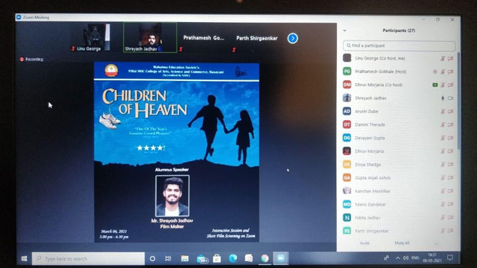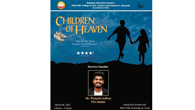 The Film, Drama and Music Club and Faculty of Arts in association with the Internal Quality Assurance Cell (IQAC) organised an interactive discussion on Career Opportunities in the Field of Acting and Editing (Part of Alumni’s Contribution) with college alumni and filmmaker, Mr. Shreyash Jadhav on 6th March, 2021 between 3:00 p.m. to 4:30 p.m.