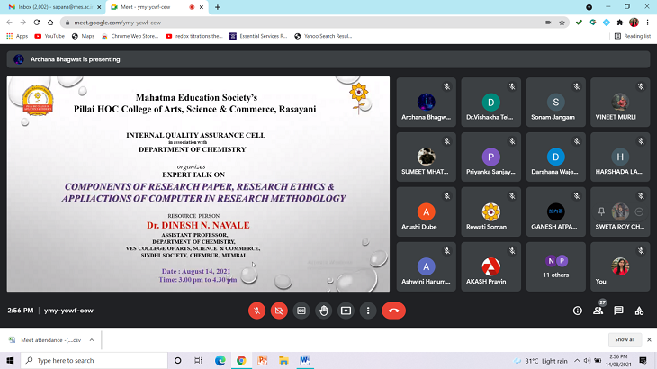 Expert Talk on “Components of Research Paper, Research Ethics and Application of Computer in Research Methodology”