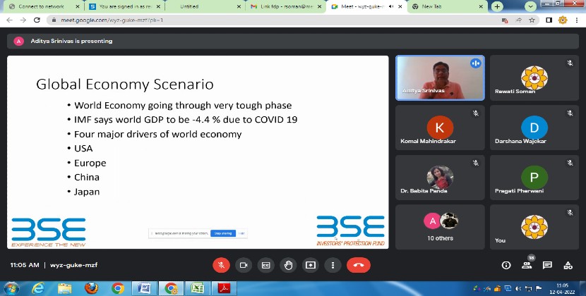 The duration of FDP was from April 07 to 13, 2022. The one week online FDP was consisting of six different sessions on each day. The resource person for all sessions was Dr. V. Aditya Srinivas, Chief Operating Officer & Chief Economist Head, International Business Division, Bombay Stock Exchange Brokers’ Forum.