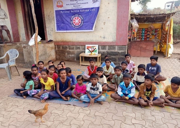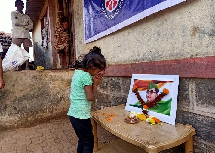 Every year on 23rd January our country celebrates the birth anniversary of the great freedom fighter Netaji Subhash Chandra Bose. This year in 2021, Government of India has decided to celebrate the birthday of Netaji Subhash Chandra Bose as ‘Parakram Diwas’ every year. In order to honour and remember Netaji’s indomitable spirit and selfless service to the nation the NSS Unit of Pillai HOC College of Arts, Science and Commerce organised a prayer meet at Mazgaon Village. The prayer meet included the children of the village who were told about the role of Netaji in India’s freedom by the volunteers. The children also sung patriotic songs with volunteers and also the children kept flowers in front Netaji’s picture. The meet was ended by singing National Anthem