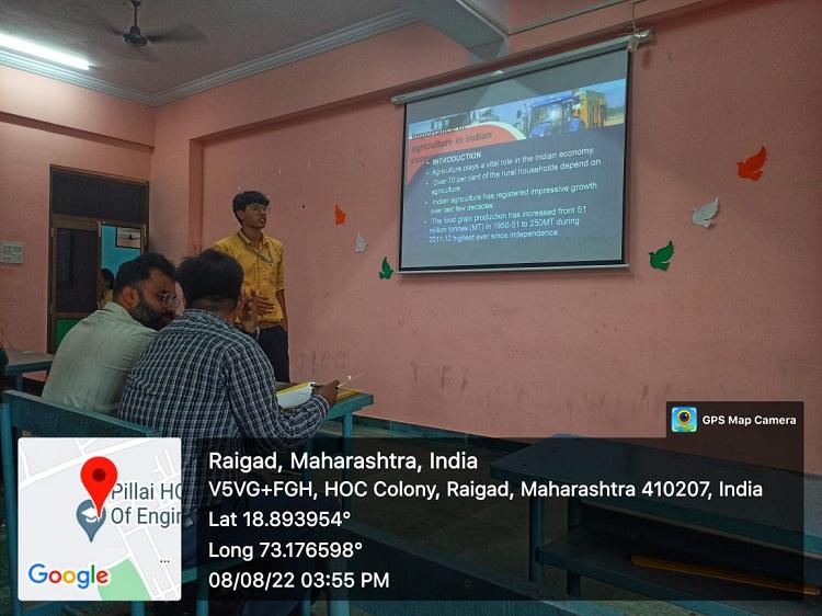 On 8th August, 2022, Institutional Social Responsibility under the banner of Unnat Bharat Abhiyan in association with Internal Quality Assurance Cell jointly organizes Presentation competition under the theme of 75 Azadi ka Amrit Mahotsav. The Students were given topics on Indian Economy like GDP as growth Factor, Agriculture as important in Indian Economy etc. The students presented presentation on Glimpse of 75 years of Indian history and how has our economy helped in Growth towards the positive factors of our Economy