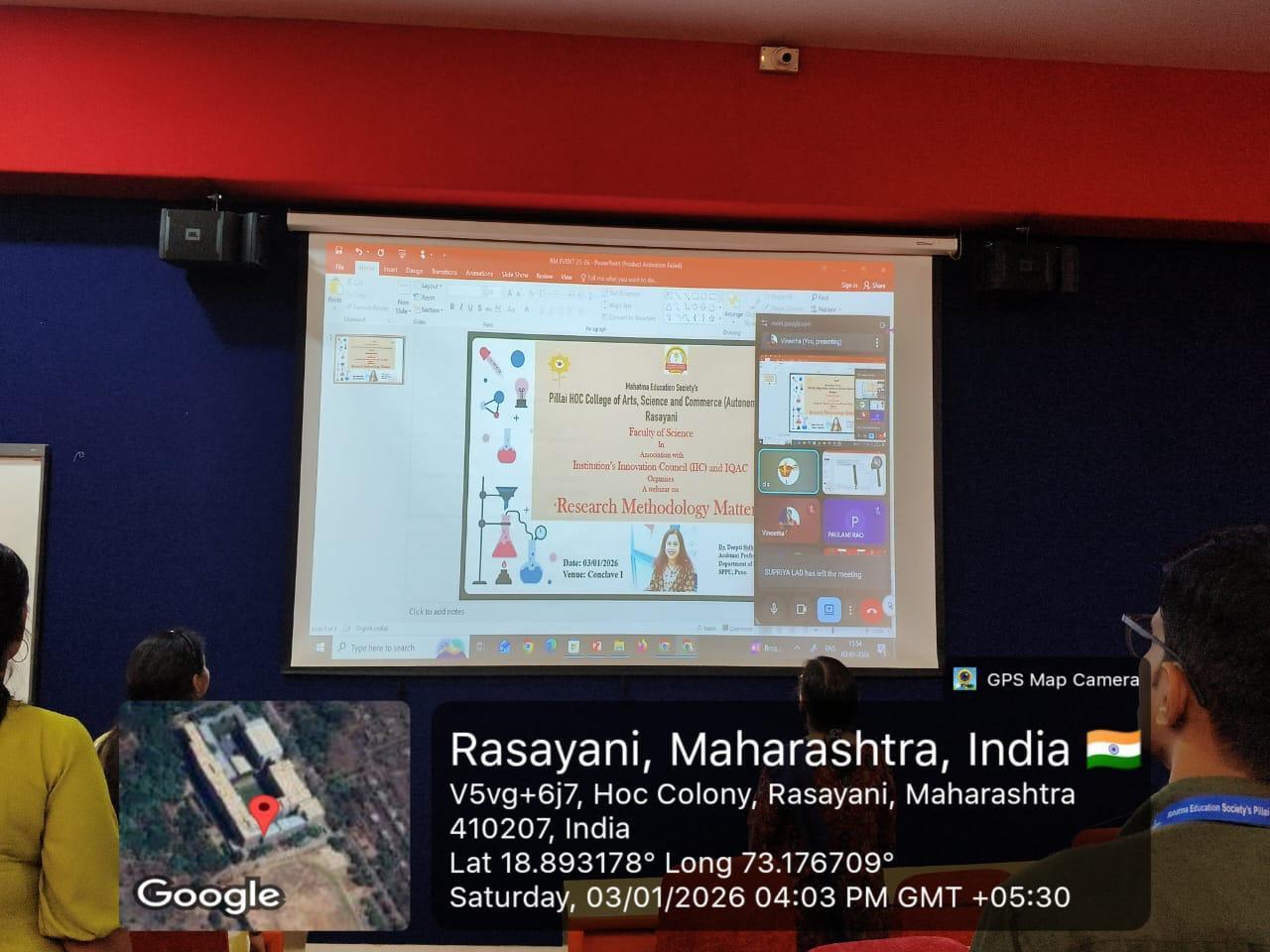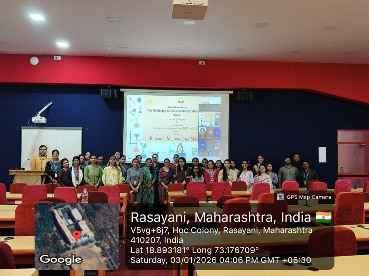 The Faculty of science in collaboration with the Internal Quality Assurance Cell (IQAC) of Pillai HOC College of Arts, Science and Commerce, Autonomous Rasayani, organized a Research Methodology session titled “Research Methodology Matters: Science Perspective.” The session was conducted by Dr. Deepti Sidhaye and was aimed at educating faculty members and postgraduate students on the fundamentals of research writing, including the structure, components, and ethical considerations involved.