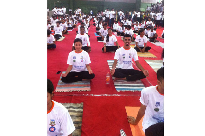 The Yoga session started exactly at 2:30 p.m. with Prayer, and systematic practice of different “ASANAS” of standing, sitting and laying positions smoothly changing in succession under the instructions of Yoga teacher and supervision of trained Volunteers. During the course of “Yogabhyas”, the Yoga teacher also narrated the usefulness of different “Asanas” as a precautionary measure, in curing many Diseases and the usefulness of Yoga in the overall well being of a human being. The entire “YOGABHYAS” lasted for an hour and ended at 3:30 p.m. with a “Sanskrit Shloka”.
