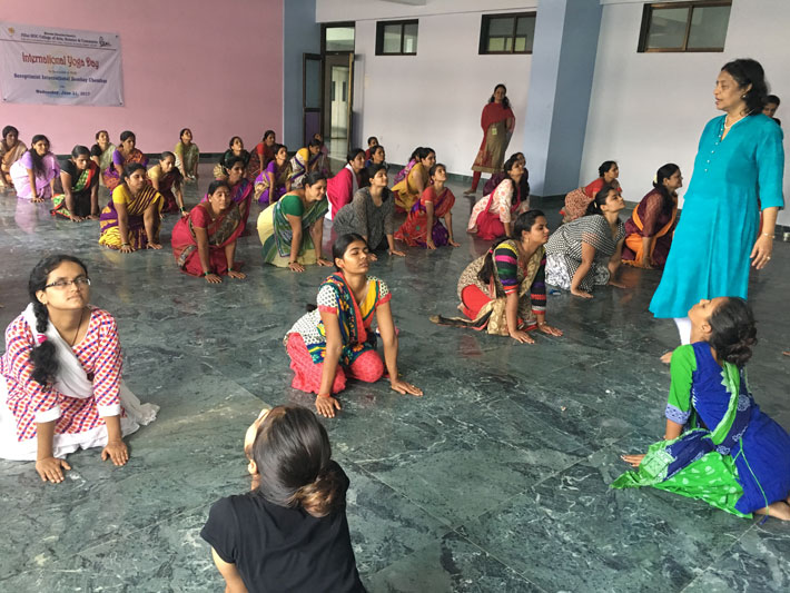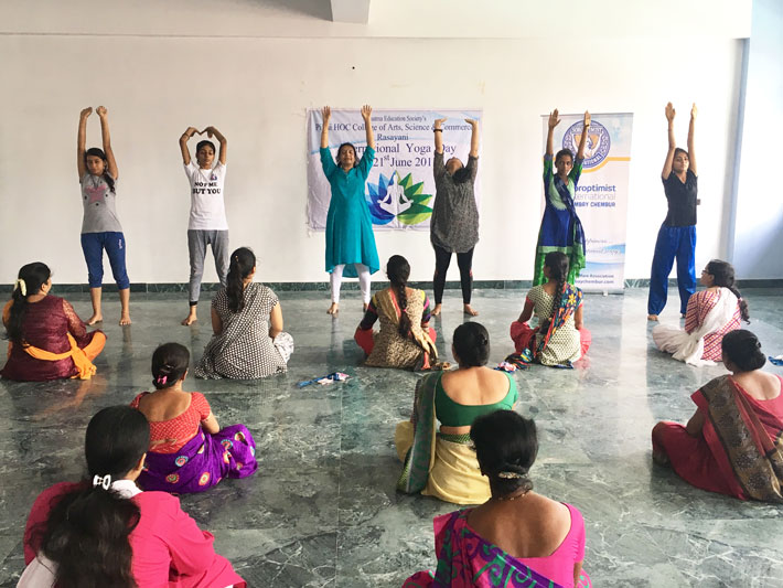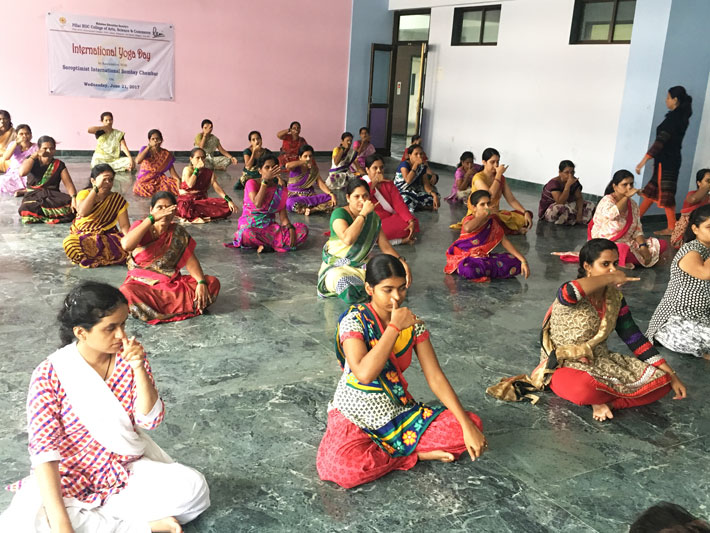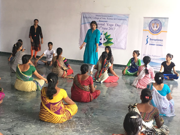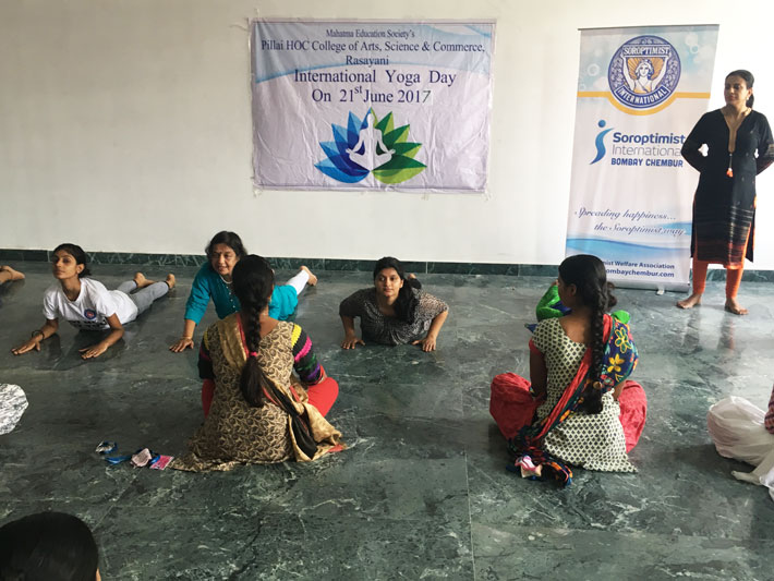 Pillai HOC College of Arts, Science and Commerce with The Soroptimist International Bombay Chembur (SIBC) conducted a programme to mark the occasion of “The International Yoga Day” on 21st June, 2017, with an objective to address this issue. A Yoga Session of around sixty minutes was organized for The Female Housekeeping Staff of our College with an aim to create awareness amongst them about the concept of Yoga and help them with some basic asanas and breathing exercises which can bring in a whale change in their day to day life.