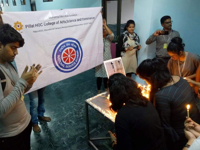 The NSS unit of Pillai HOC Arts, Commerce and Science planned to celebrate KARGIL DIWAS on 26th July, 2018. On this day NSS Unit planned to organize a programme at the college auditorium. There were 300 volunteers and 18 teachers in this event. We showed a documentary for the occasion. On the same day after screening the documentary candle light march was held on the 8th floor in the memory of the martyr.