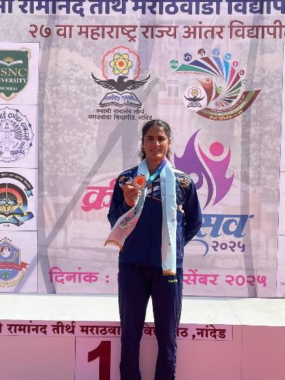 Mr. Soham Mokal: delivered an exceptional performance across multiple competitions, winning 1st place in 100m & 200m at the Inter-University Championship (Pune), 2nd place in 200m at Inter-University (Nanded), and 3rd place in 100m, 200m, and 400m at the Maharashtra State Junior Athletics Championship 2025. He also secured 3rd place in 200m (U-20) and 3rd place in 400m, along with a 2nd place team finish in 4×400m relay at Khelo India University Games 2025, showing consistency in sprint events.