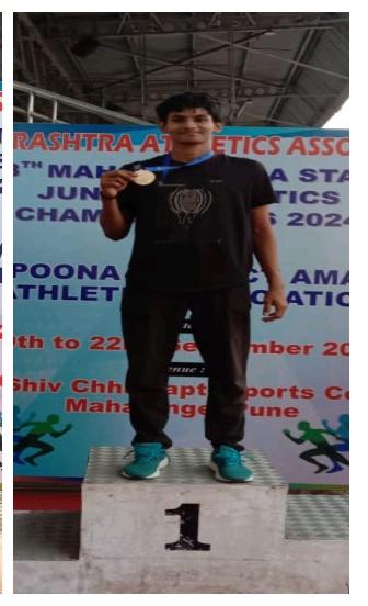 Mr. Harsh Raghuvanshi : achieved 2nd place in Long Jump (U-18) at the Maharashtra State Junior Athletics Championship 2025 and 1st place in Triple Jump at the Mumbai University Inter-Zonal Athletics Championship, proving his strength in field events.