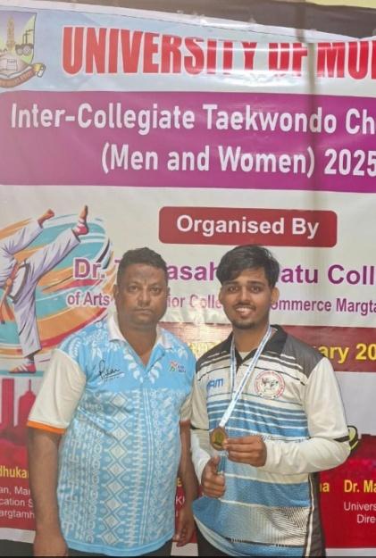 Mr. Bhagat Shreejay Hareshwar: secured 1st place in the Taekwondo Tournament (Under 63 kg) at the Inter-Zonal level (2025), demonstrating excellent combat skills and dominance in his category.