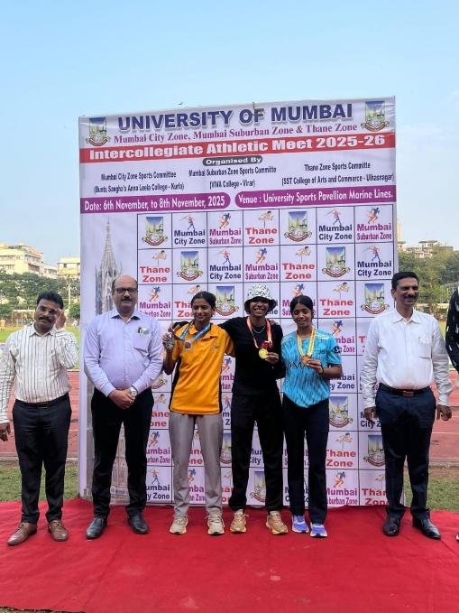 Mr. Kushal Kapileshwari: earned 3rd place in 800m and secured 1st place in 4×100m relay and 1st place in 4×100m mixed relay at the Mumbai University Mumbai City Zone Athletics Championship 2025–26, demonstrating versatility in both individual and team events.