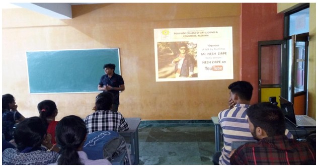 Our Alumnus, Mr. Ganesh Zirpe (2015-16) batch delivered a talk on how he entered into the field of acting. He also spoke at length regarding the procedure of opening a YouTube channel to the students of Pillai HOC college of Arts, Science and Commerce on 15th March, 2019. A total of seventy students attended the session thereby making it a grand success. Further he guided the students how one can earn money from YouTube. The interactive session ended with a formal vote of thanks.