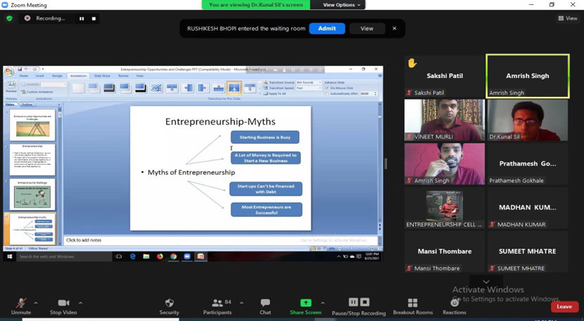 Name of the EventWebinar on "Entrepreneurship - Opportunities & Challenges" : Talk by Dr. Kunal Sil