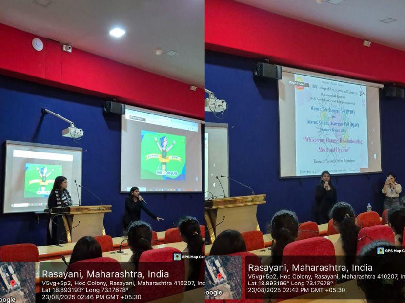 On the occasion of promoting awareness and breaking taboos surrounding menstruation, the National Service Scheme (NSS) Unit of Pillai HOC College of Arts, Science and Commerce (Autonomous), Rasayani organized a seminar on Women Development on Menstrual Hygiene on 23rd August 2025 at the PHCASC Auditorium.