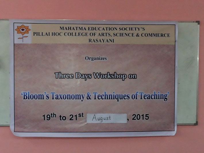 3 Days Workshop on “Bloom’s Taxonomy and Techniques of Teaching” was held from 19th to 21st August, 2015.