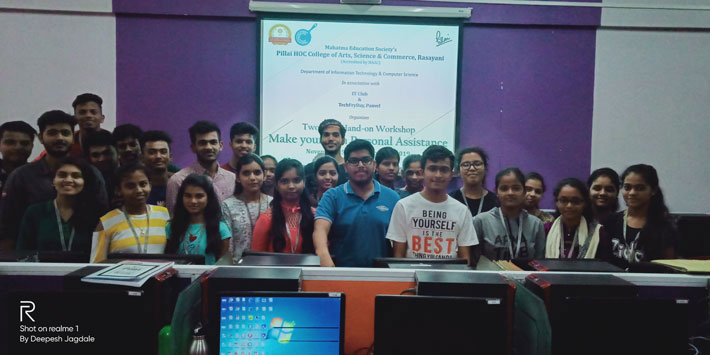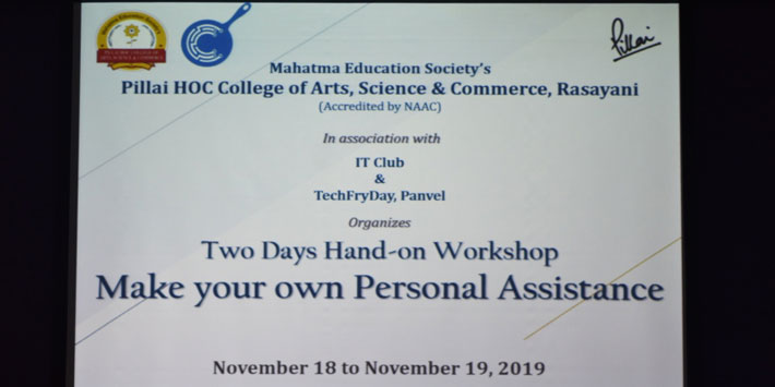 I.T. Club of department of I.T. / C.S. in association with Tech Fry Day organized a Two Day Workshop on “Make Your Own Personal Assistant” for the students of first Year and second year I.T. / C.S. departments. The workshop was aimed to employ students with Industry-level skill, it taught students to make their own personal assistance, to design and code for different speech to text application. It also helped students to explore Python, Python libraries and Python for Speech Recognition. The workshop was conducted by Mr. Sagar Mahajan, CEO, Techfryday. The workshop for second year students was conducted on 15th and 16th November, 2019 which saw participation of 26 students and for first year students it was conducted on 18th and 19th November, 2019 which saw participation of 48 students. The event concluded by distributing certificates to all the participants.